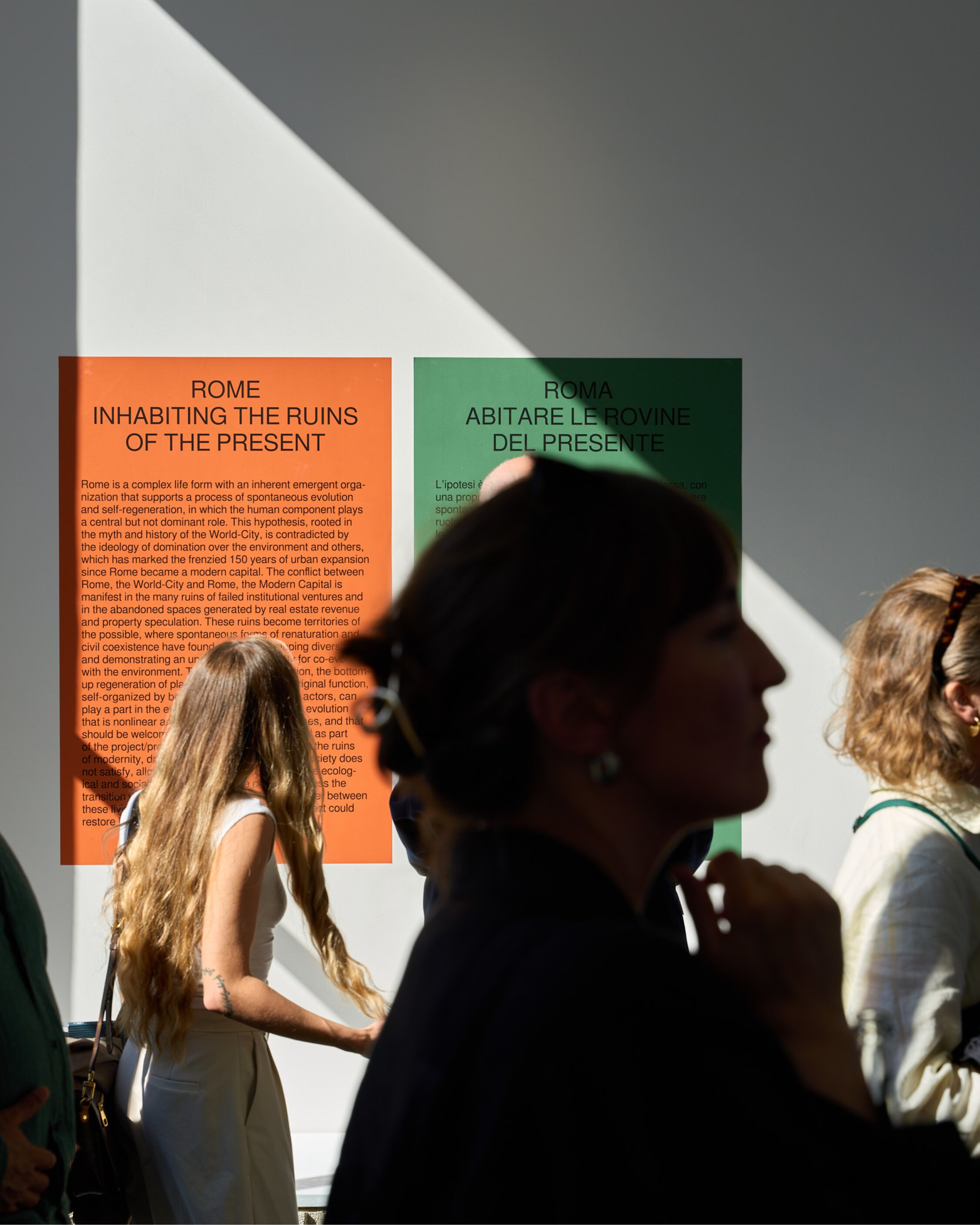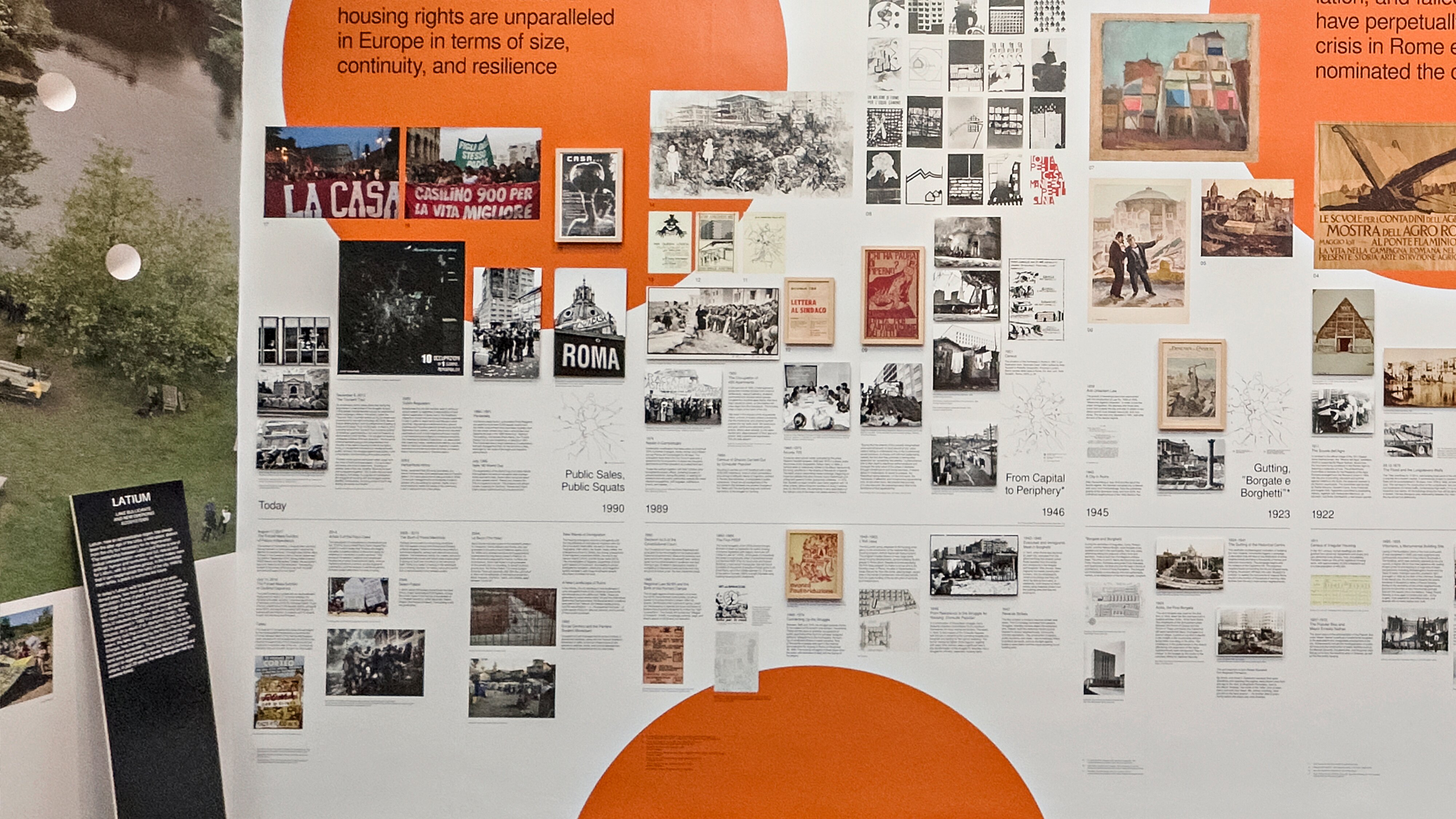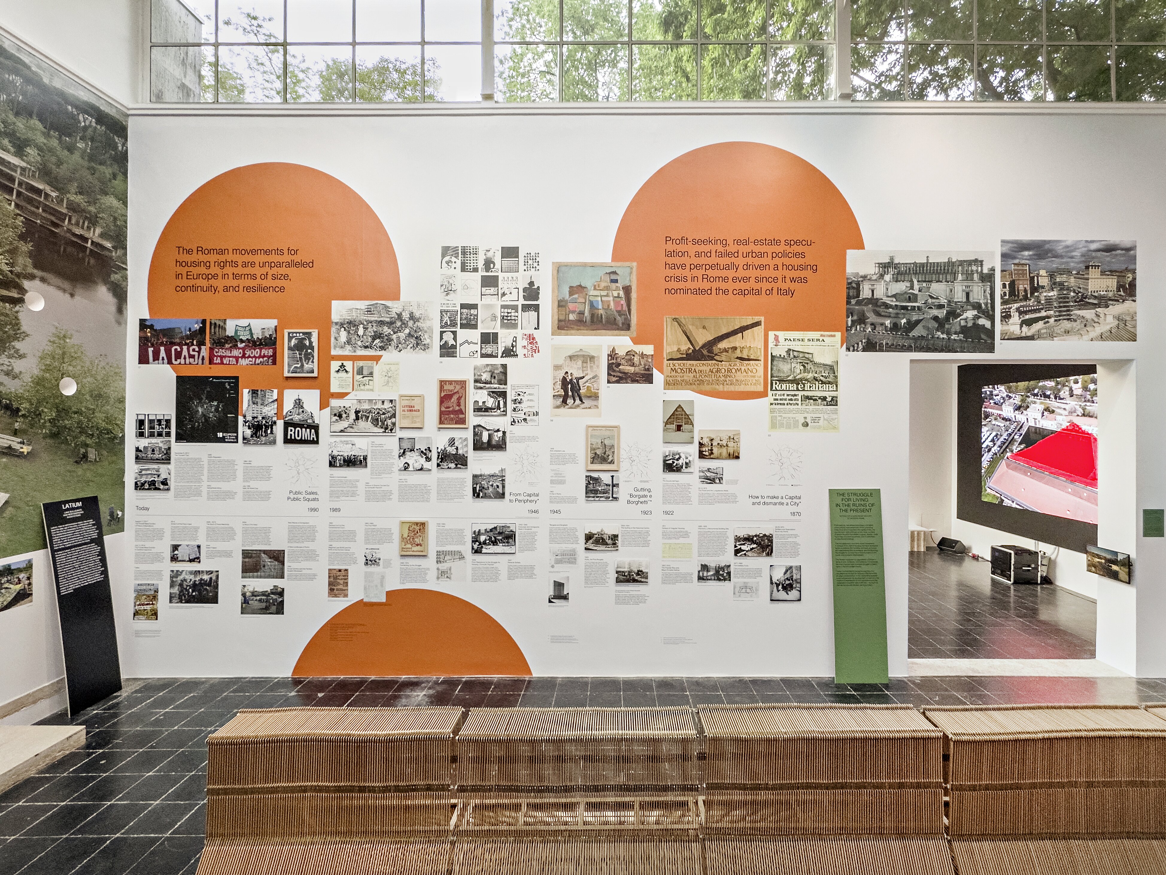 ROM ist das Gegenmodell: dicht, spontan, chaotisch, intensiv – Symbol unkontrollierter Stadtentwicklung, aber auch voller Initiativen, die sich aus der Notwendigkeit heraus selbst organisieren. Für diesen Teil der Ausstellung haben wir ein großmaßstäbliches, dichteres Gestaltungskonzept entwickelt, das keinem Raster folgt, aber dennoch mit punktuellen Bezügen arbeitet und Highlights setzt – Bottom-up – der Ansatz, der unterschiedliche Realitäten der ewigen Stadt erfahrbar macht.