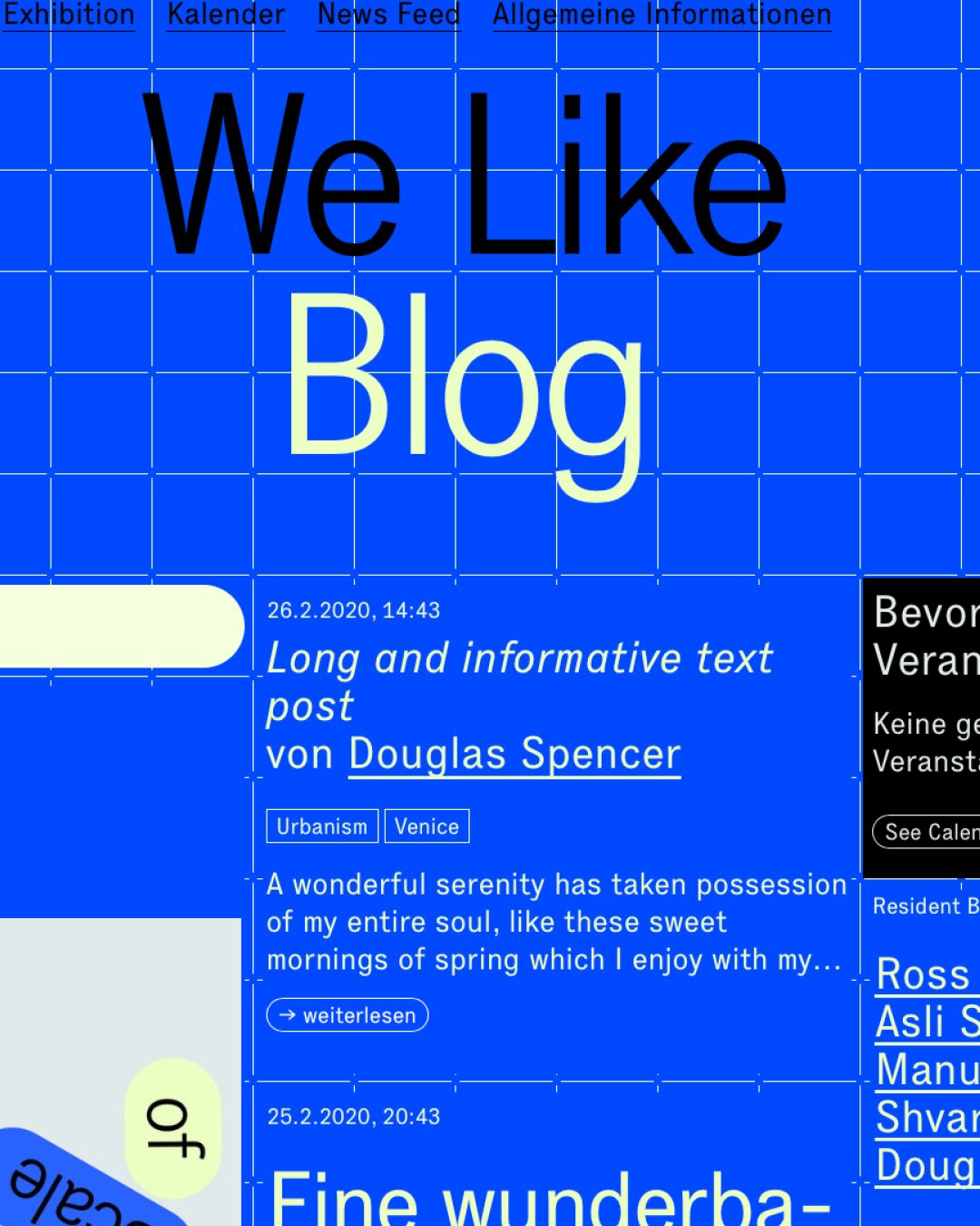 Begleitet werden die physischen Ausstellungen von einer umfangreichen Präsenz im Internet: unter www.platform-austria.org finden sich internationale Beiträge von Blogger*innen und ein Social Media-Kanal bietet die Image-Bank „We Like" die Möglichkeit, Bildvorschläge zur Architektur der Zukunft hochzuladen, gemäß dem Generalmotto der diesjährigen Biennale Architettura „How will we live together?“