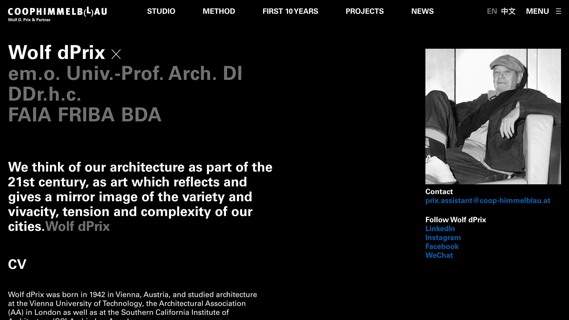 „Wenn wir von Schiffen sprechen, denken andere an Schiffbruch. Wir jedoch an vom Wind geblähte Segel. Wenn wir von Adlern sprechen, denken andere an Vögel. Wir aber sprechen von der Spannweite der Flügel. Wenn wir von schwarzen Panthern sprechen, denken andere an Raubtiere. Wir aber an die ungezähmte Gefährlichkeit von Architektur. Wenn wir von springenden Walen reden, denken andere an Saurier. Wir aber an das Fliegen von 30 Tonnen Gewicht. Wir finden Architektur nicht in einem Lexikon. Unsere Architektur ist dort zu finden, wo Gedanken schneller sind als die Hände, um sie zu begreifen.“