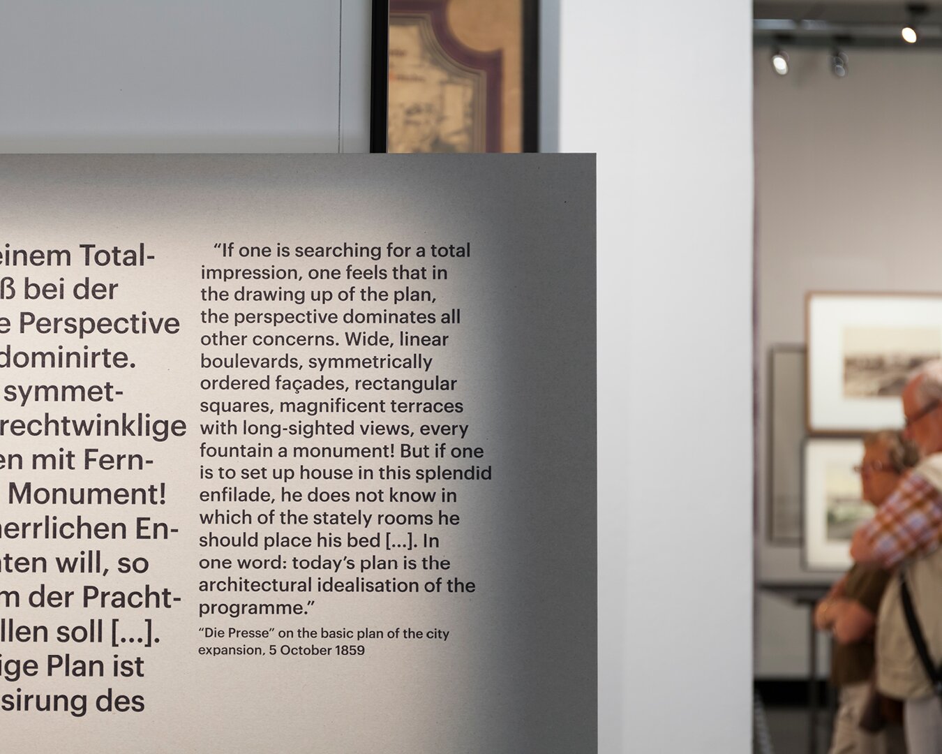 Zum Jubiläum der Ringstraße 2015 rückt das Wien Museum deren Pionierjahre in den Mittelpunkt: Wien auf dem Weg zur modernen Großstadt — vom Beginn der Stadterweiterung bis zur feierlichen Eröffnung des Prachtboulevards am 1865. Noch nie gezeigte Pläne, Entwürfe, Modelle und Fotografien schildern das Nebeneinander von Alt- und Neu-Wien, Baustellen und Brachland, Abbruch und Neubau. Dahinter wird eine Gesellschaft im Umbruch sichtbar: Die Ringstraße, als staatliches Großprojekt begonnen, wurde zur Bühne des Bürgertums, das gegenüber der Aristokratie an politischer, wirtschaftlicher und kultureller Bedeutung gewann und die letzten Jahrzehnte der Donaumonarchie entscheidend mitprägte.