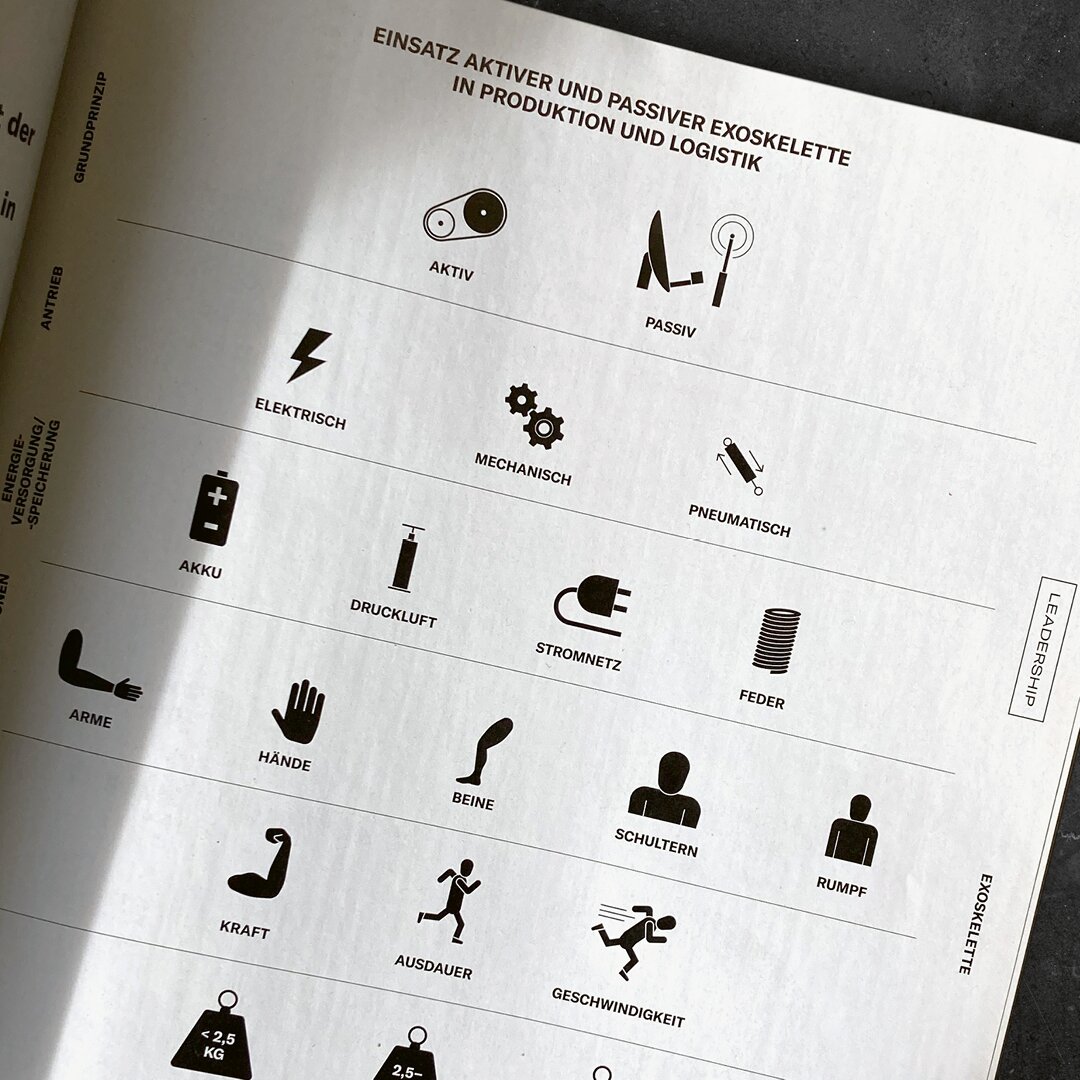 Die Toolbox umfasst ein umfangreiches Icon-Set sowie Richtlinien für Fotografie, Illustration und Infografik. Die Reduktion auf schwarz-weiße Typografie unterstreicht den faktischen Anspruch der Redaktion.