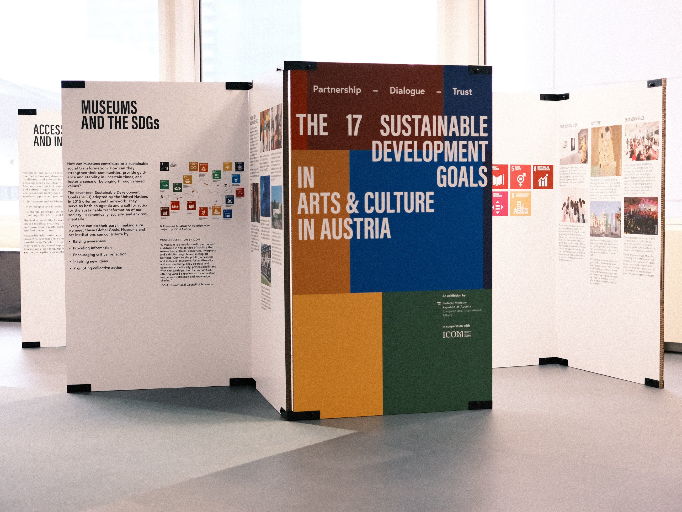 Im Auftrag des Bundesministeriums für europäische und internationale Angelegenheiten (BMEIA) haben wir gemeinsam mit Doris Rothauer eine modulare Wanderausstellung konzipiert. Anhand konkreter Beispiele werden Projekte einer Vielzahl österreichischer Initiativen und Institutionen dokumentiert, die kreative Lösungen und Beiträge zur Erreichung der 17 SDGs der Vereinten Nationen leisten und diese in ihre institutionelle Arbeit sowie in den Alltag integrieren.
